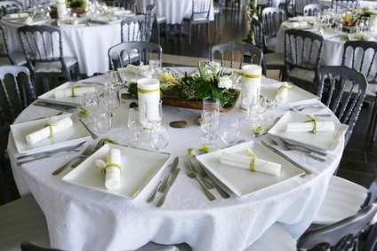 Art de la table classique, nappage blanc et service inclus